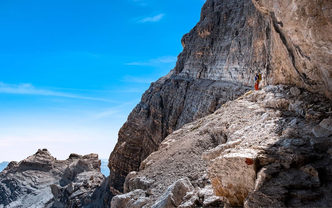 In the photo: Kate is making her way along this stunning ledge on the Bocchette Centrali — and trust me, it’s a place you’ll want to experience yourself. We keep coming back here.